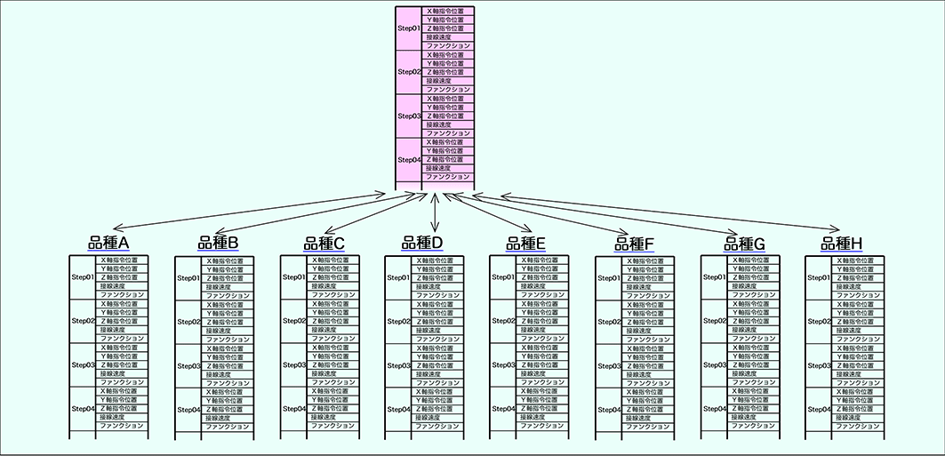更に,プログラム変更が容易であること,品種変更が容易であること,も目標としましたので,Step毎にコマンド命令が選択できる,配列データとしました。
