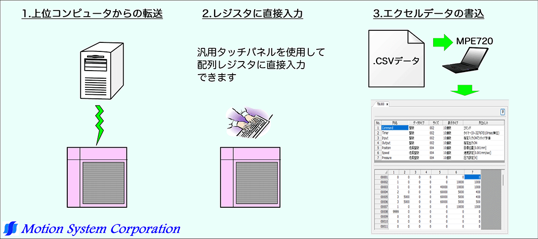 電子カムの配列データを,制御装置に読込または保存方法は各種にあります。
